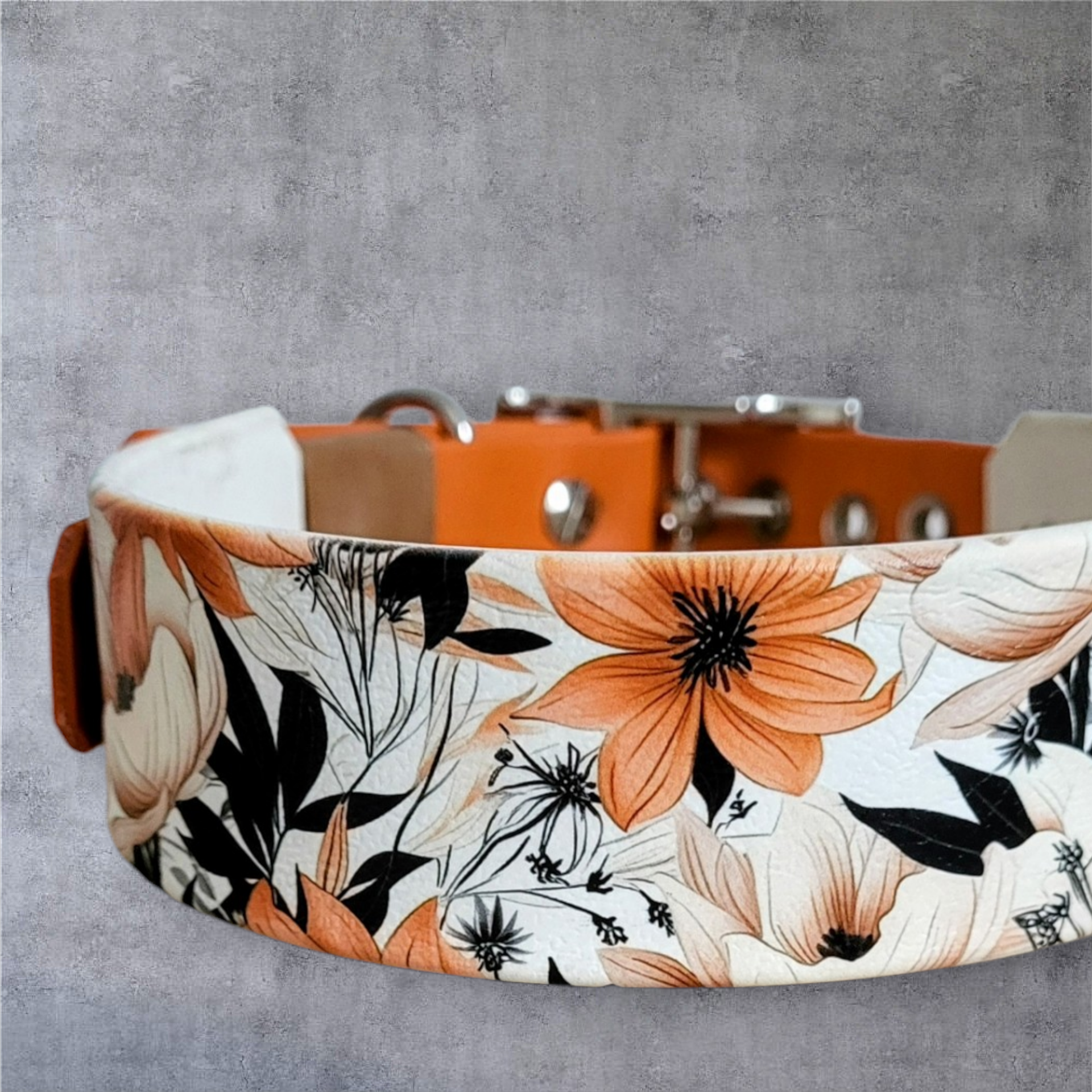 Material: Biothane Burned Orange mit UV-Druck „Vintage Botanika“