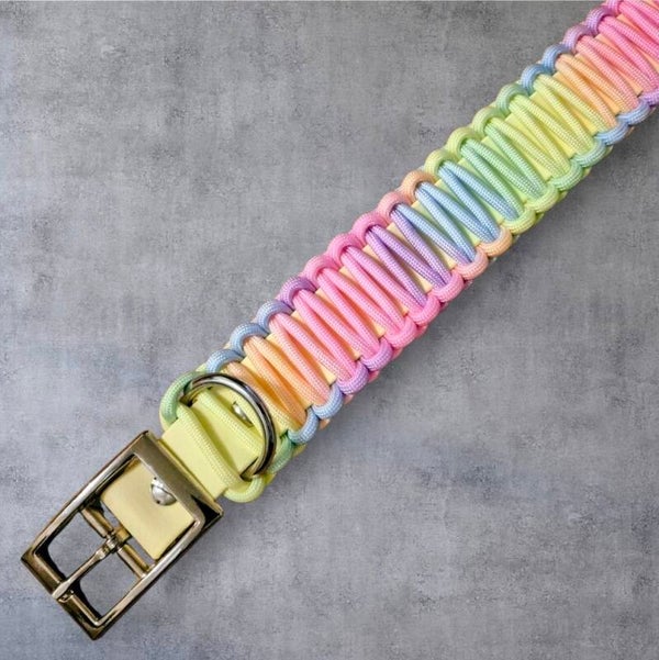 Material: Biothane Pastel Gelb mit Paracord Neon Rainbow