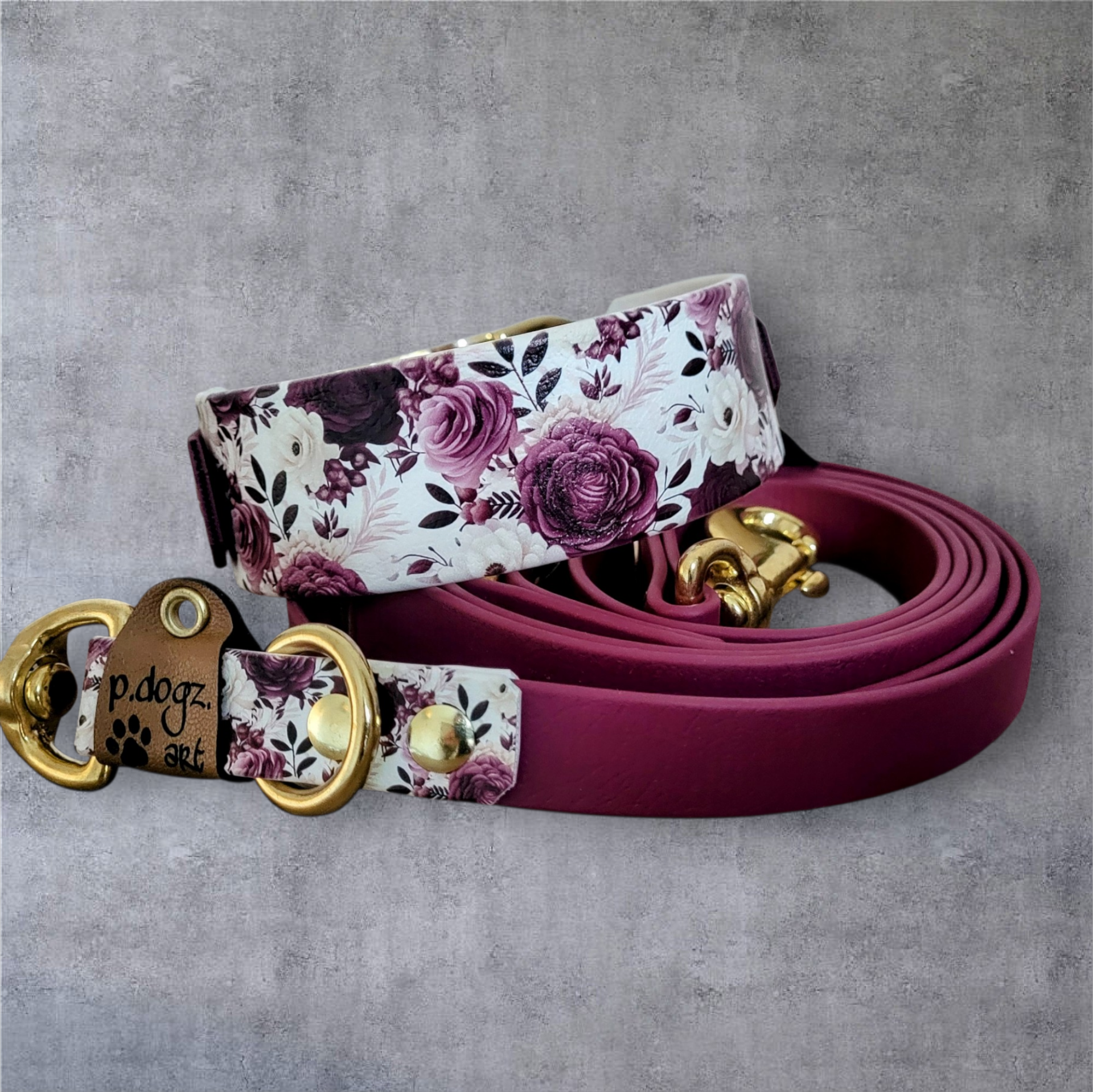 - Material: Biothane Weinrot und UV-Druck Biothane "Wein blumig"