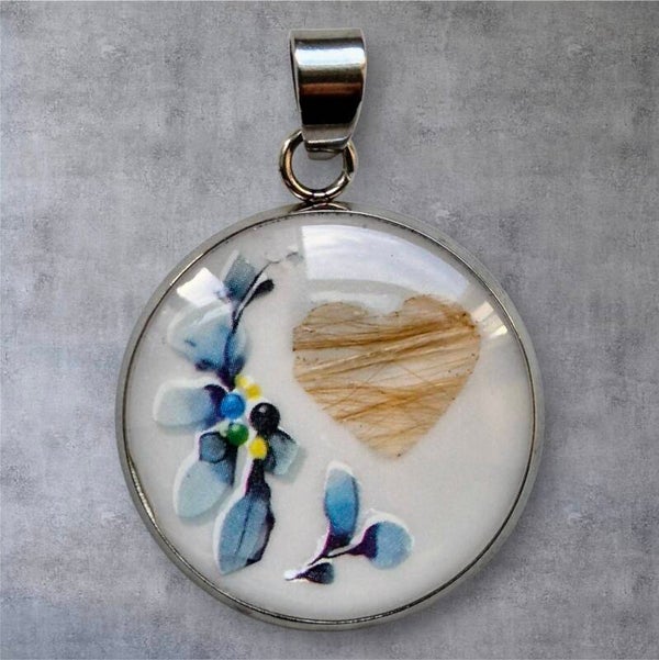 Erinnerungsanhänger „Blütenherz“ mit echtem Fell