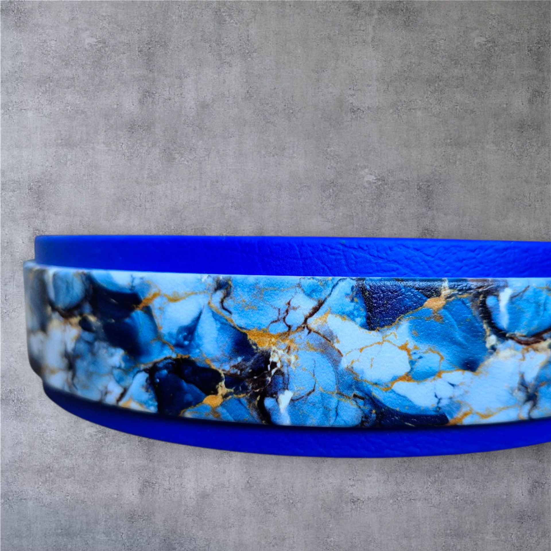 Material: Biothane Electric Blue mit UV-Druck „Blue marble“