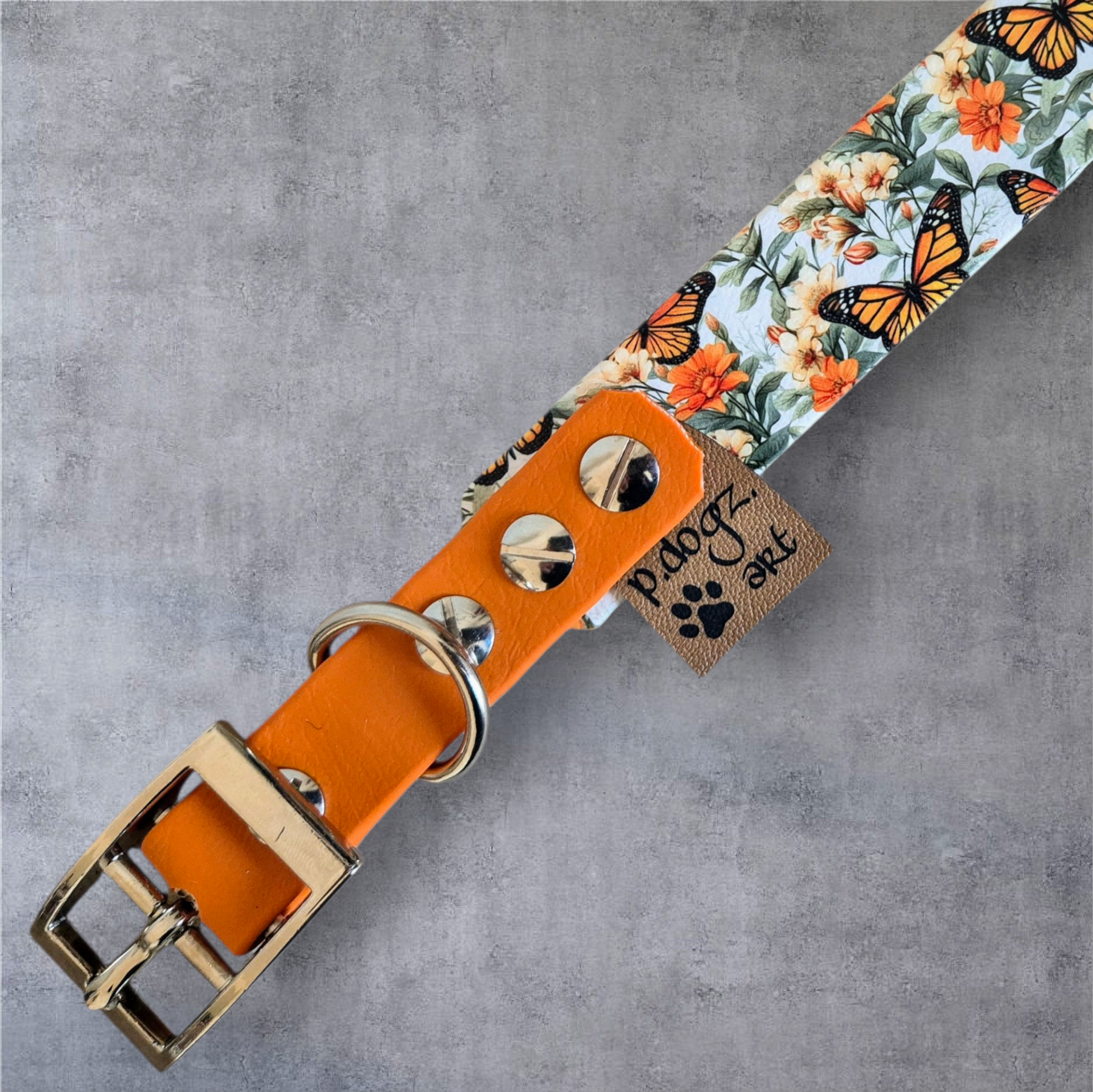 Material: Biothane Burned Orange mit UV-Druck „Monarchs“
