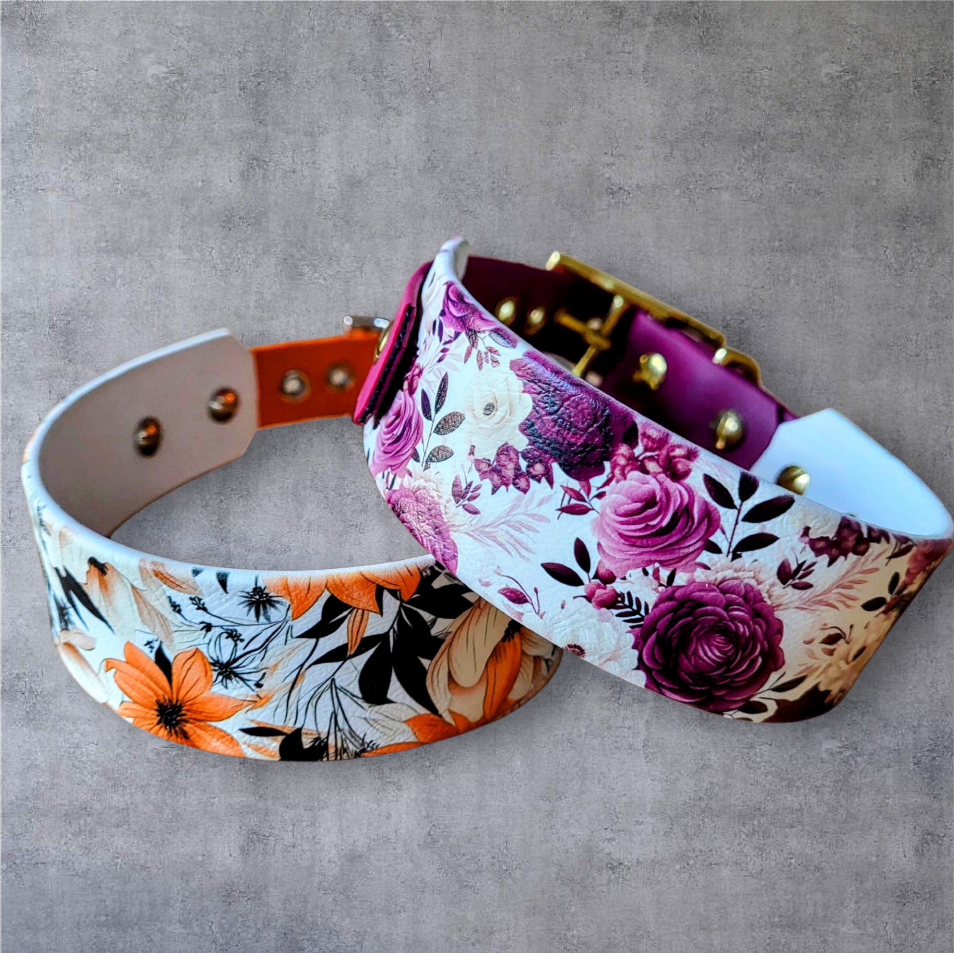 Individuell nach deinen Wünschen gefertigte Halsbänder aus Biothane, UV-Druck Biothane und Paracord. Robust, wetterfest und frei kombinierbar in Farbe und Design.